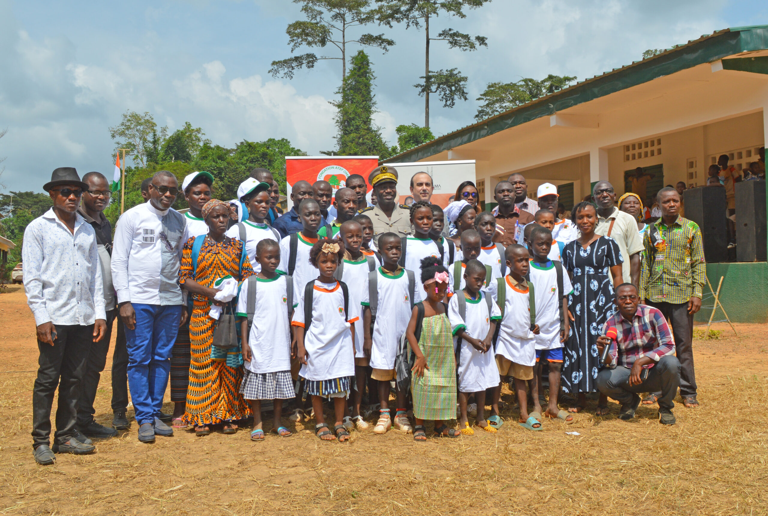 Dans une ambiance conviviale et joyeuse, la cérémonie, présidée par le sous-préfet d’Ogoudou, Aimé Dekouadio, a été rythmée par des sketchs, des jeux de société et surtout par la remise de kits scolaires aux trois meilleurs élèves de chaque niveau. Les kits, composés notamment d’un sac à dos et de fournitures, ont été attribués à 28 élèves issus des deux écoles du groupe : l’une couvrant l’ensemble des classes du primaire, l’autre s’arrêtant au CE1.